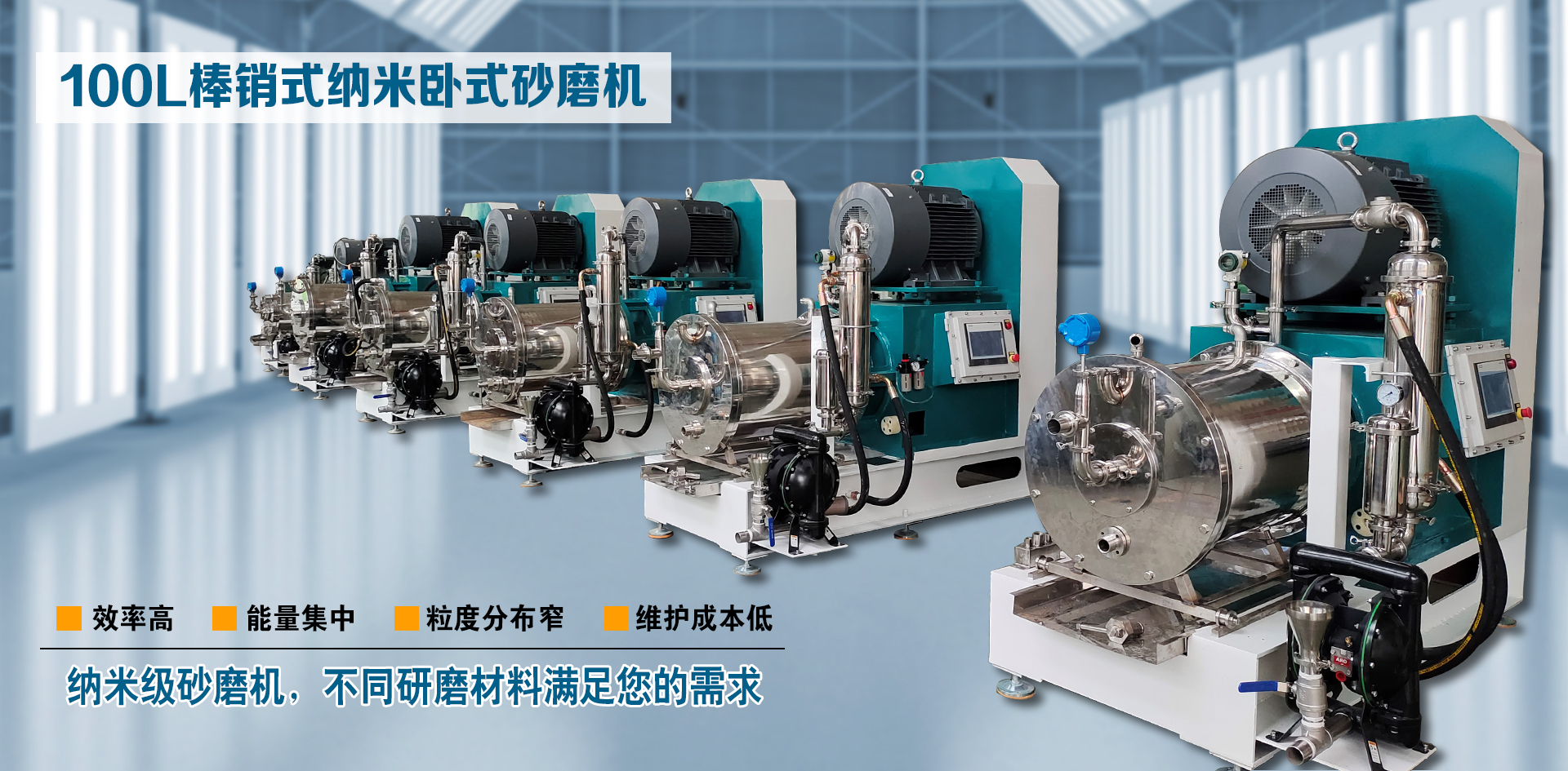 工業(yè)級(jí)棒銷動(dòng)態(tài)砂磨機(jī)廣泛應(yīng)用于微米級(jí)亞微米級(jí)、納米級(jí)的中高粘度物料的研磨,動(dòng)靜環(huán)間隙出料,棒銷轉(zhuǎn)子結(jié)構(gòu)滿足不同尺寸、不同研磨細(xì)度以及不同研磨工藝的生產(chǎn)需求 臥式砂磨機(jī),適用于對(duì)研磨精度要求高的化工物料,連續(xù)封閉式高效率濕式研磨分散。 輸送泵有氣動(dòng)隔膜泵和圓弧泵、刮板泵研磨介質(zhì)為氧化錯(cuò)珠,根據(jù)物料及細(xì)度要求選擇介質(zhì)大小